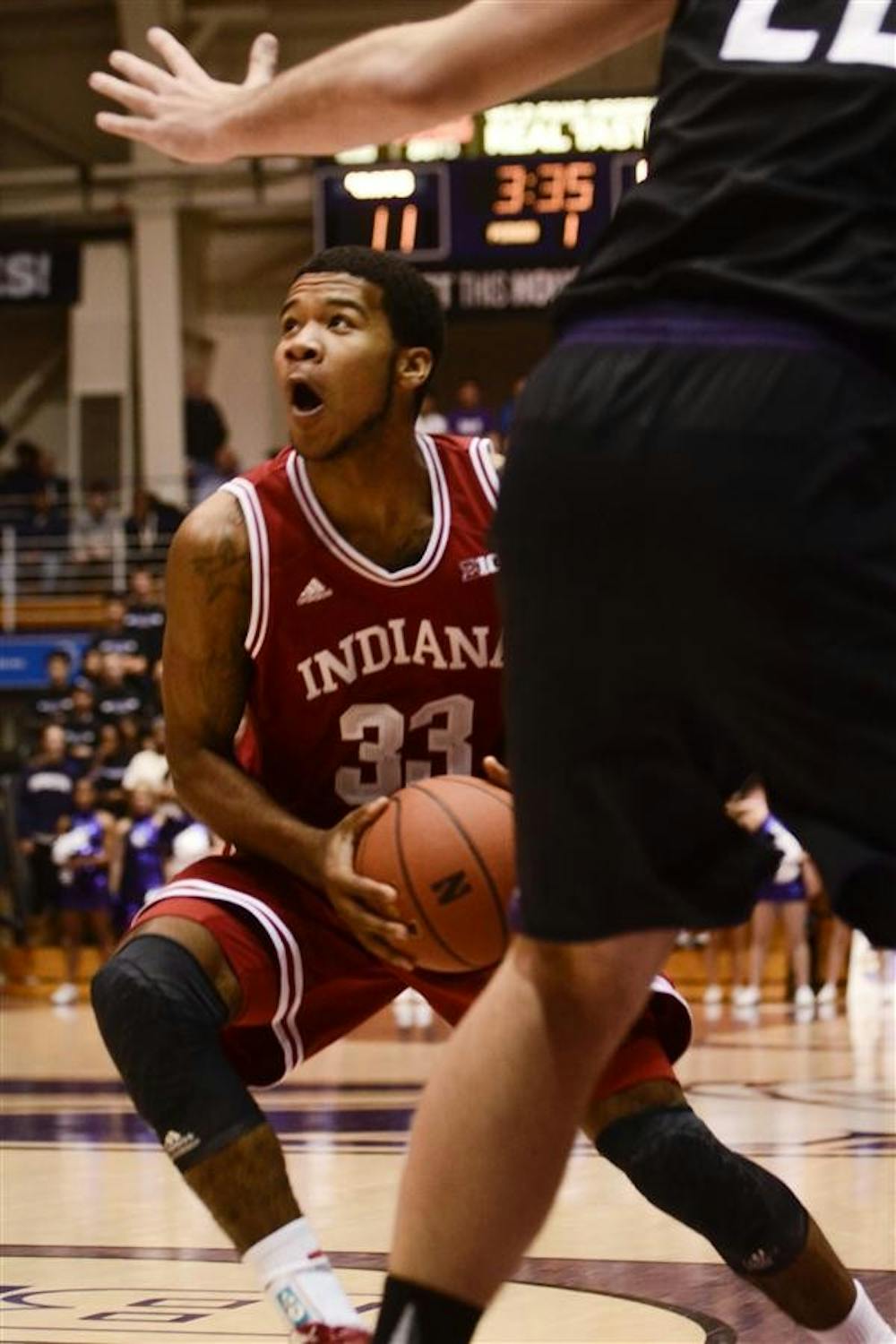 Freshman forward Jeremy Hollowell handles the ball during the Hoosiers' 67-59 win against Northwestern on Sunday at Welsh-Ryan Arena.