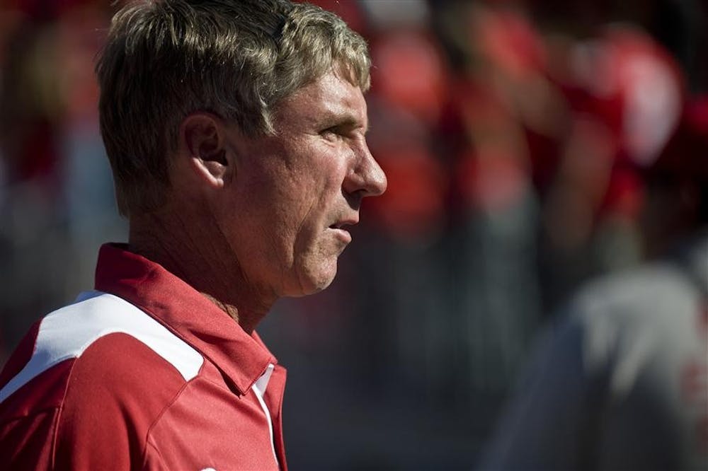 IU coach Bill Lynch leaves the field after the Hoosiers' 38-10 loss to Ohio State on Saturday in Columbus, Ohio. Peter Stevenson