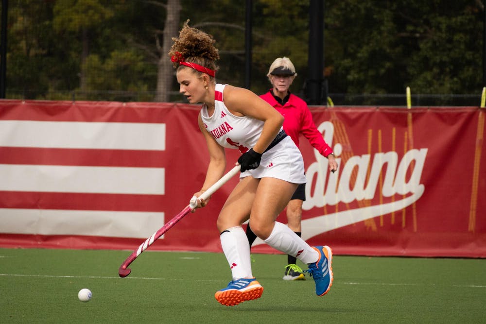 Freshman back Lily Freeman takes a pass during a game against Michigan State on Oct. 26, 2025, at Deborah Tobias Field. The Hoosiers hold a 9-8 record. Katherine Maners