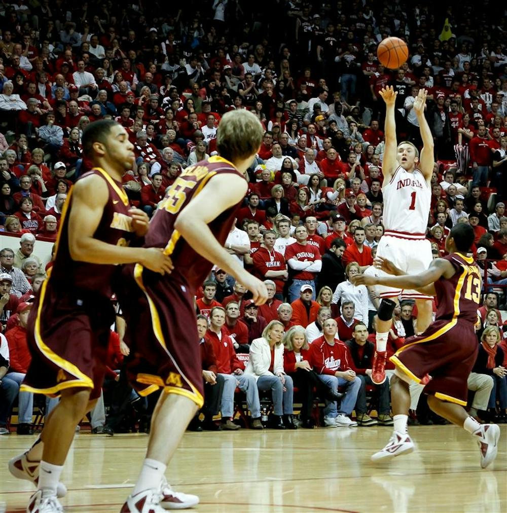 Junior guard Jordan Hulls attempts a basket during the Hoosiers' 77-74 loss to the Minnesota Golden Gophers on Thursday. The game marked the Hoosiers' first home loss of the season.