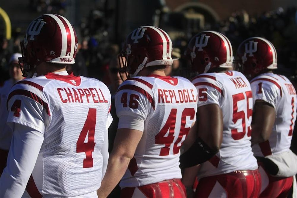 IU seniors lead the Hoosier football team out on the field against Purdue on Saturday at Ross-Ade Stadium in West Lafayette, Ind.
