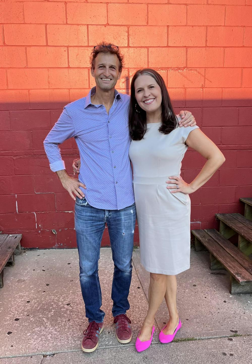 Rich Phillips and Kimberly Rosvall pose for a picture in fall 2025 outside of Restaurant Ami, heading out to sing karaoke with their faculty friends. The two have been together since 2009. Courtesy Photo