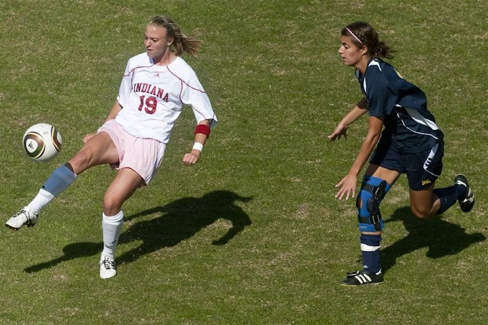 Freshman midfielder Becca Zambon controls the ball during IU's 2-1 loss to Michigan on Sunday at Bill Armstrong Stadium. Peter Stevenson