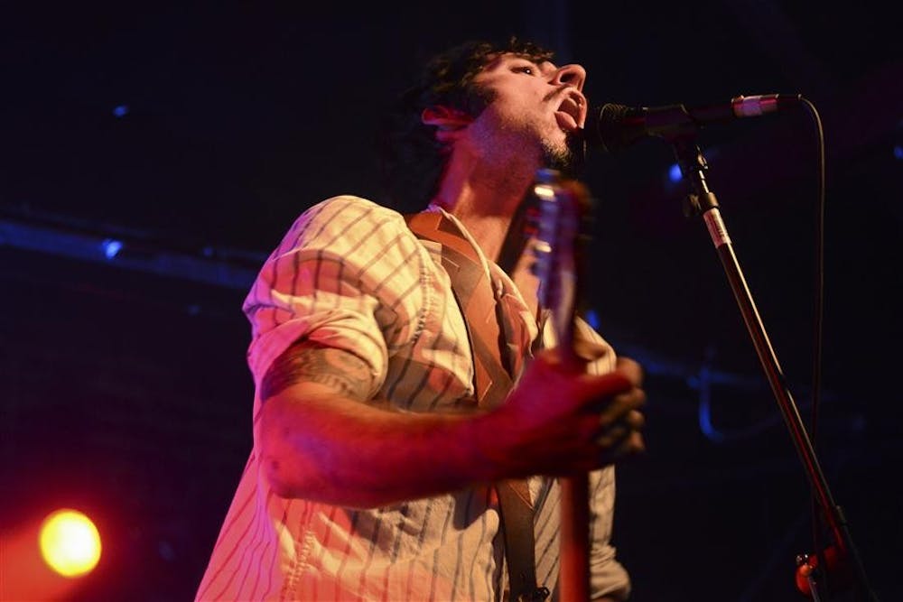 Lead singer and guitarist of Murder by Death, Adam Turla, yells and plays during their set Thursday at the Bluebird.