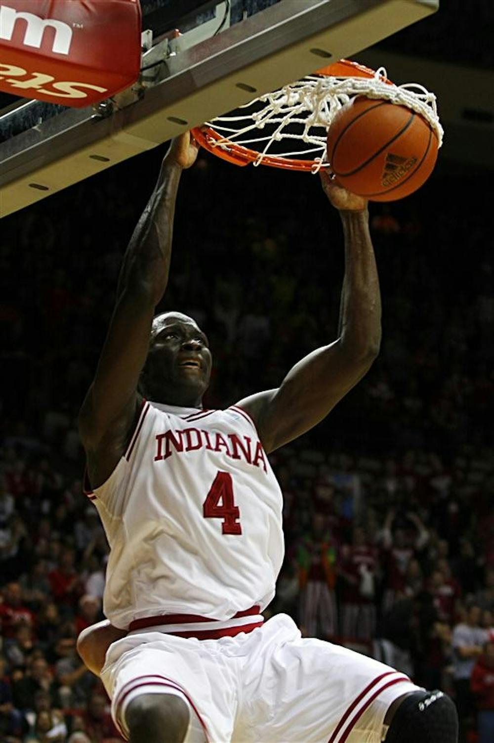 IU Sophomore guard Victor Oladipo slams a two handed dunk Sunday at Assembly Hall.