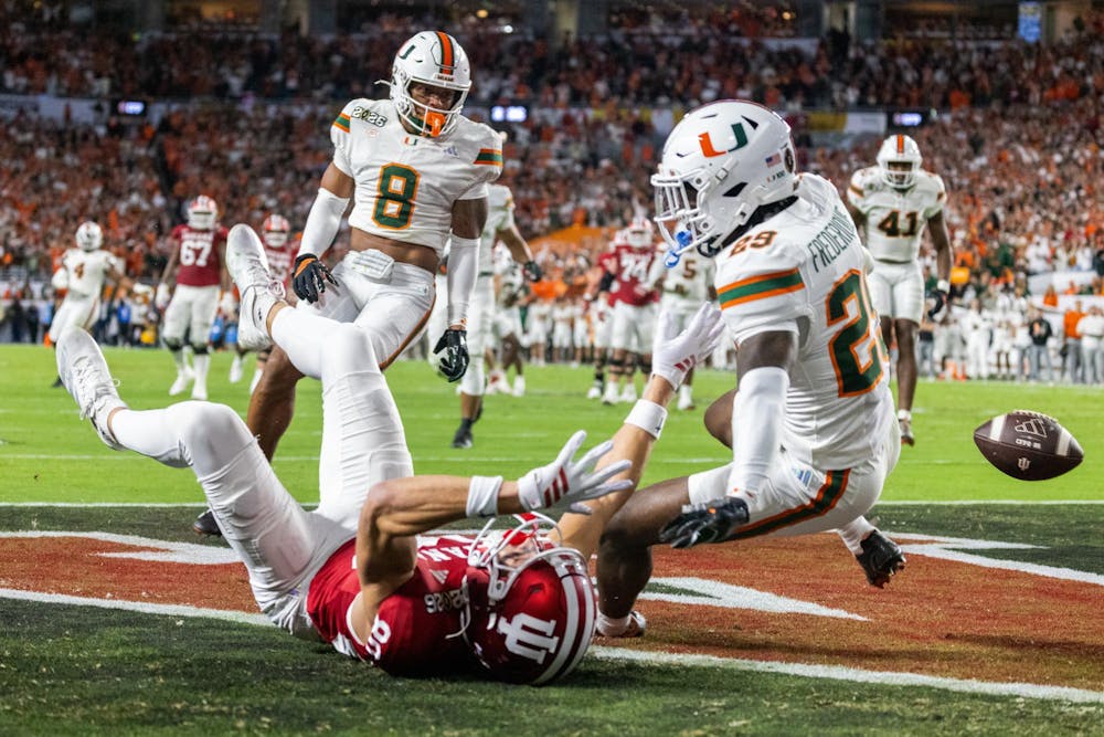 Sophomore wide receiver Charlie Becker misses a pass during the national championship game against the University of Miami on Jan. 19, 2026, at Hard Rock Stadium in Miami Gardens, Florida. Becker had four receptions in the game.