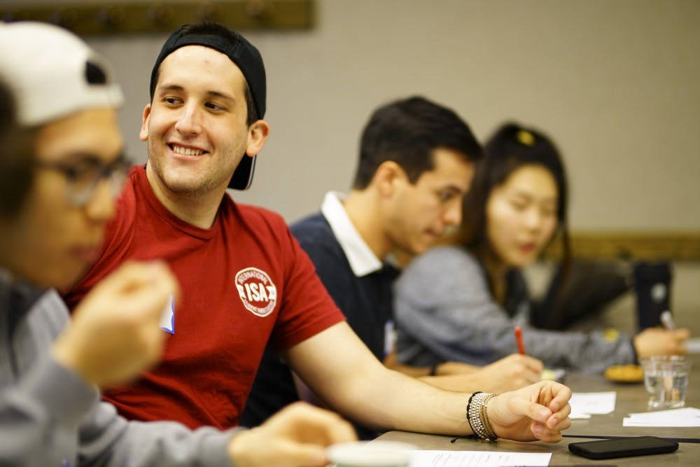 Junior Diego Castano of the International Student Ambassadors chats with members from other student organizations present at Culture of Care’s Mental Health Summit on Friday evening in the Indiana Memorial Union Oak Room. Andrew Williams