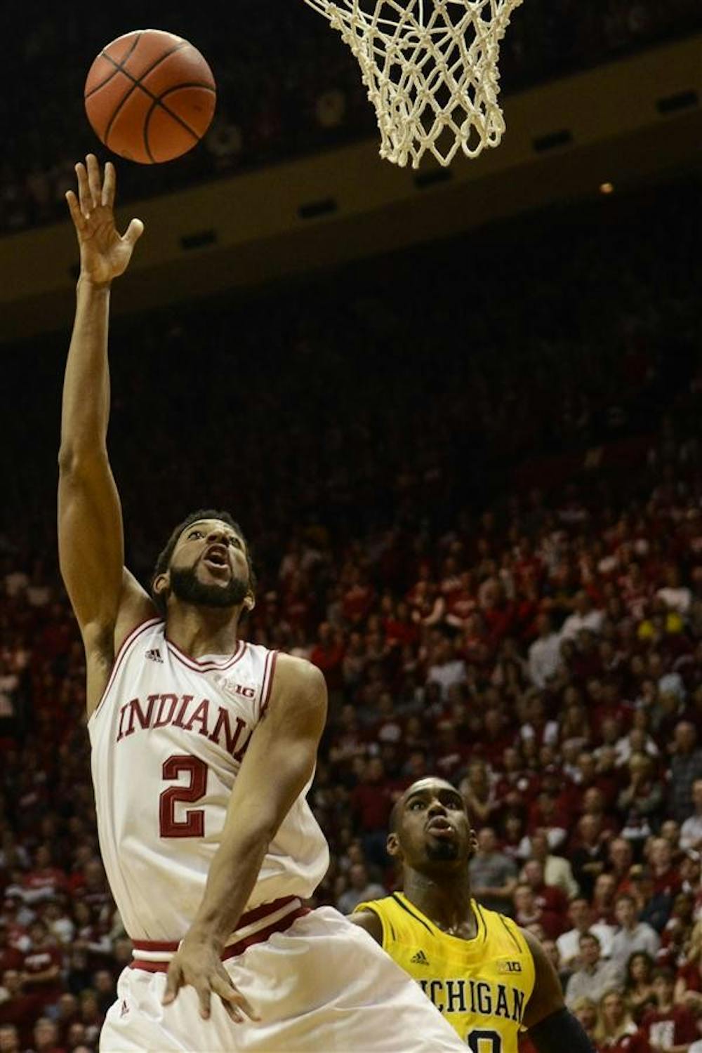Senior forward Christian Watford reaches to shoot a basket during the Hoosiers' 81-73 win against Michigan on Saturday at Assembly Hall. Steph Langan