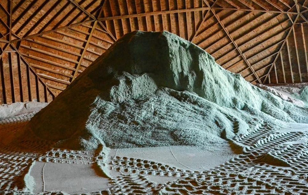 A mound of salt rests inside a dome depository Monday afternoon at Bloomington City Utilities Department.