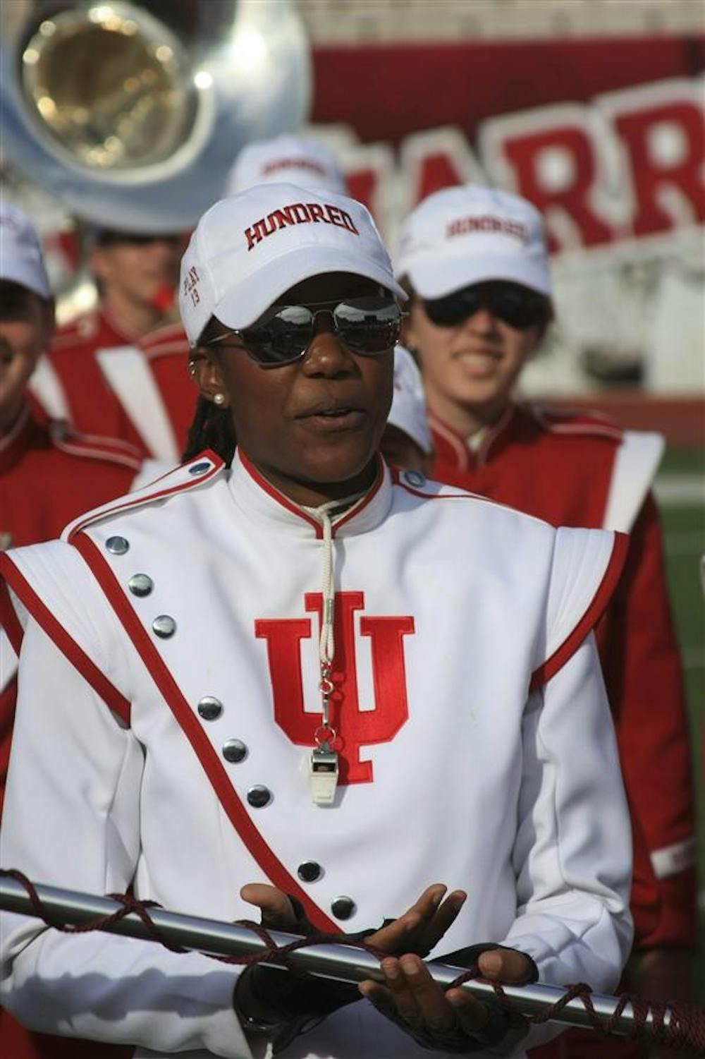 Tonya Mitchell performs with the Marching Hundred on Thursday at Memorial Stadium. Mark Felix