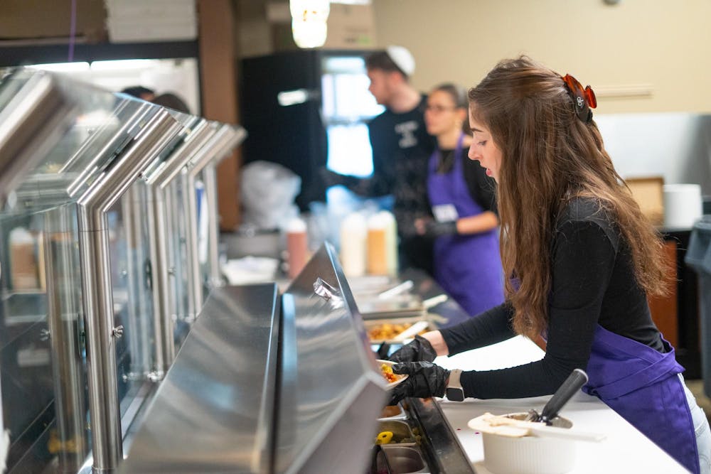 IU freshman Avery DiCocco makes a bowl during Yalla’s grand opening Jan. 13, 2026, in the Godfrey Graduate and Executive Education Center. Yalla is located in the Godfrey Cafe. Alayna Wilkening