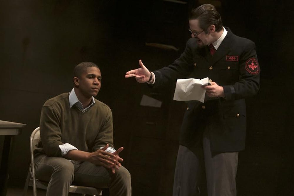 First year MFA acting student Aaron Kirpatrick (right) yells at third-year MFA acting student Jaysen Wright during a performance of "The Pillowman" Monday at the Wells-Metz Theatre.