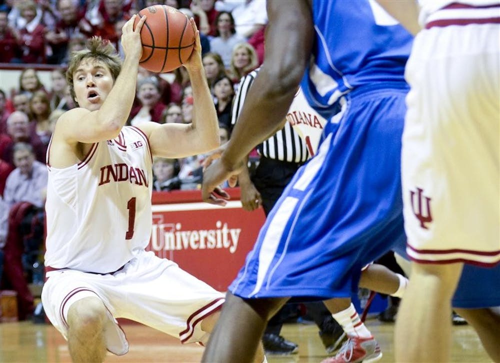 Senior guard Jordan Hulls handles the ball during the Hoosiers' 100-69 win against Central Connecticut State on Saturday at Assembly Hall. Steph Langan