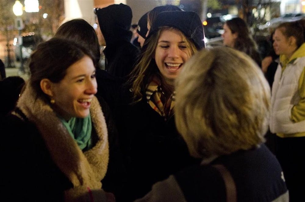 Charlene Spierer laughs with her daughter Lauren Spierer's friends, juniors Blair Wallach (left) and Amanda Roude at a prayer and support event for missing IU student Lauren Spierer on Saturday in front of Smallwood Plaza. Lauren Spierer disappeared six months ago Saturday.