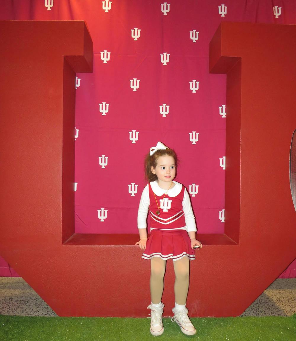 Lucy-Kate Pace, 4, is pictured Jan. 19, 2026, in her Indiana University cheerleader outfit at the Vault Pub. Pace was the only child at the restaurant to watch the game. Lily Welch