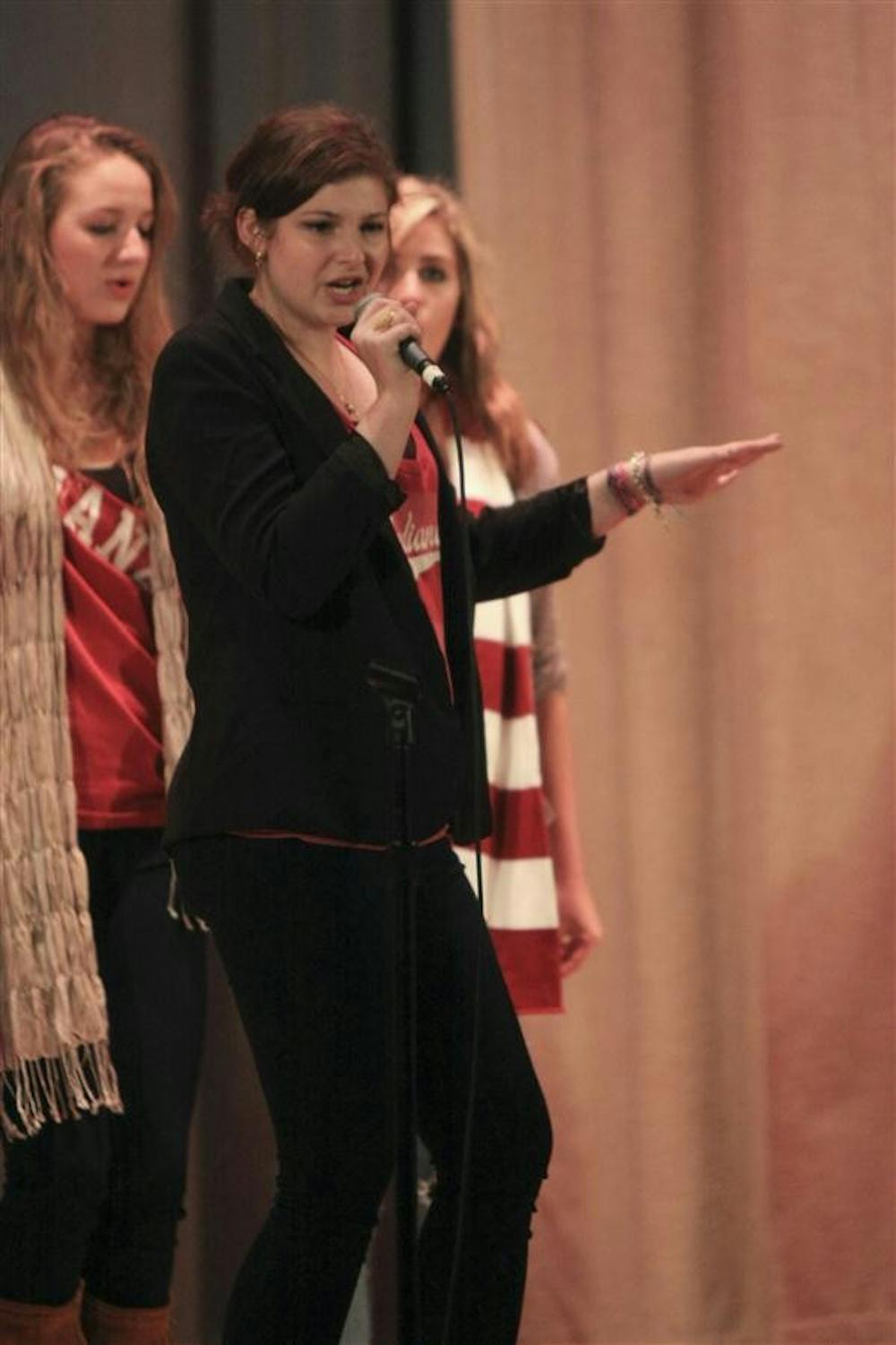 Ladies First sings a Rihanna medley during Yell Like Hell on Thursday at Alumni Hall in the Indiana Memorial Union.