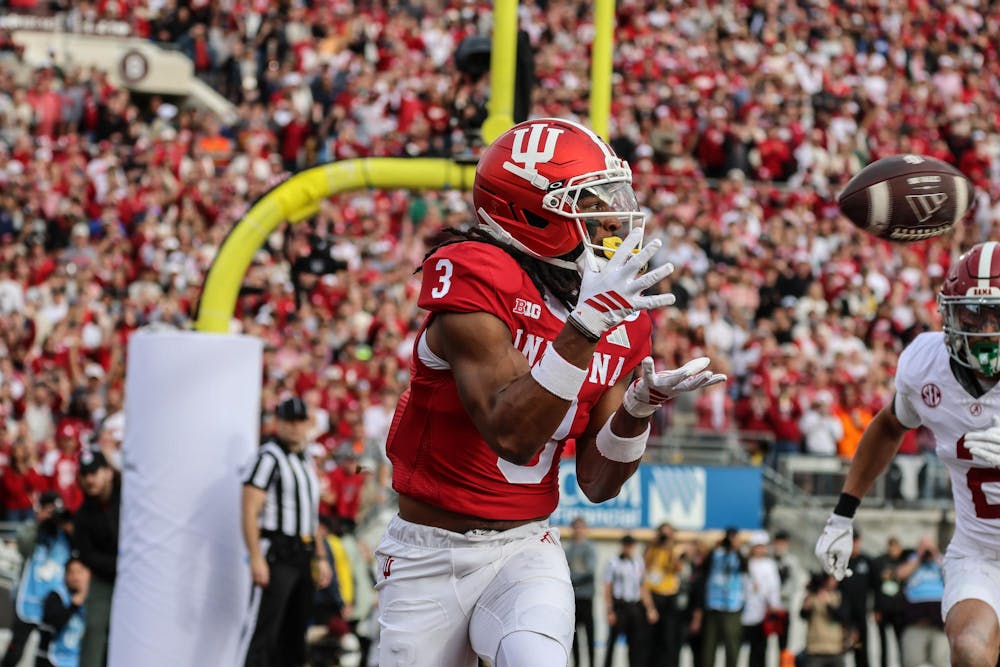 Redshirt junior wide receiver Omar Cooper Jr. receives a pass during the CFP quarterfinal game against Alabama on Jan. 1, 2026, at the Rose Bowl Stadium in Pasadena, California. Cooper had 45 yards and one touchdown in the game. Sophia Kaplan