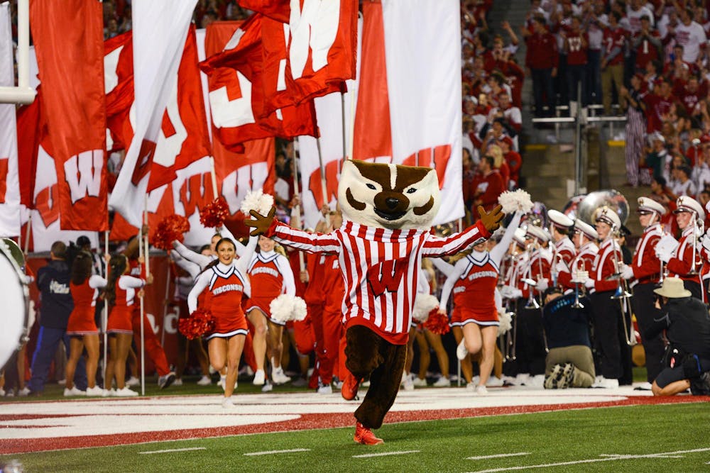 Bucky Badger runs onto the field at Camp Randall for a UW-Madison football game. Illustrator Art Evans drew the first version of Bucky in 1940. Focal Flame Photography/TNS