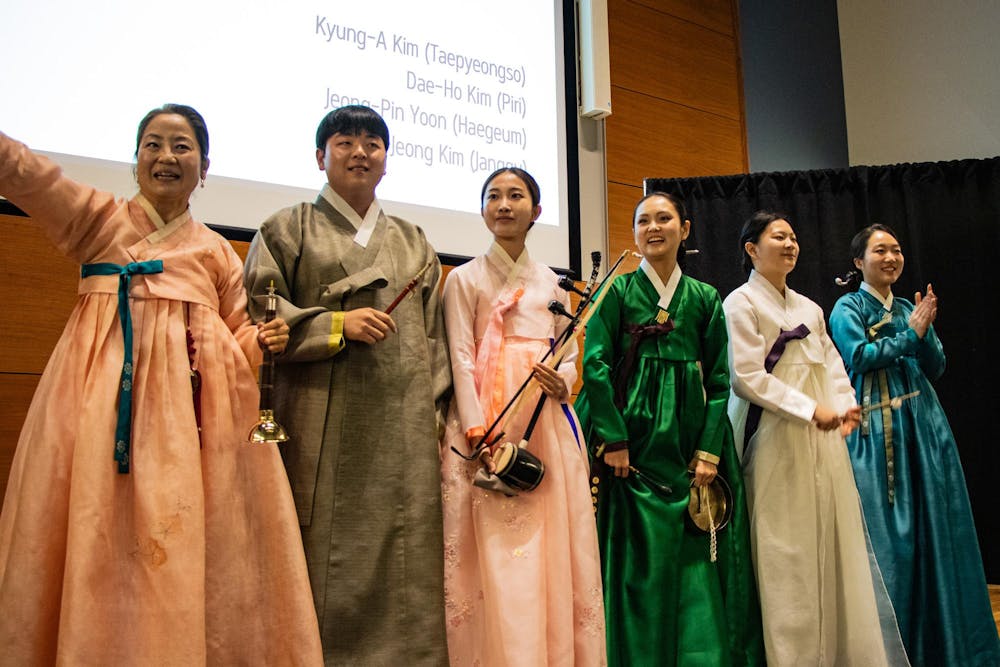 Musicians from Seoul National University perform "Enlightened Connections: Bridge to Korean Music" on Feb. 23, 2026, at the Global and International Studies Building in Bloomington. The performance was part of SNU's 2026 Global Exchange Project.