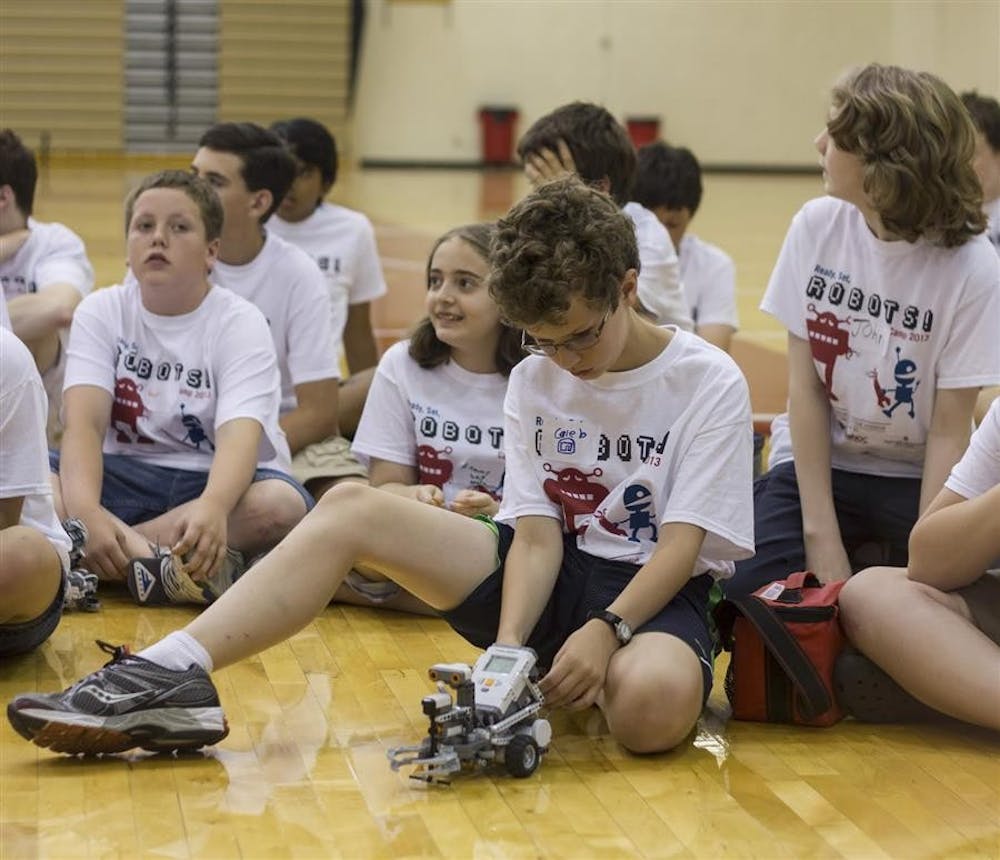 Campers prepare to demonstrate their robots to an audience Friday at the IU University Gymnasium. Ready, Set, Robots is a two-day camp that teaches kids to build and demonstrate functioning robots.