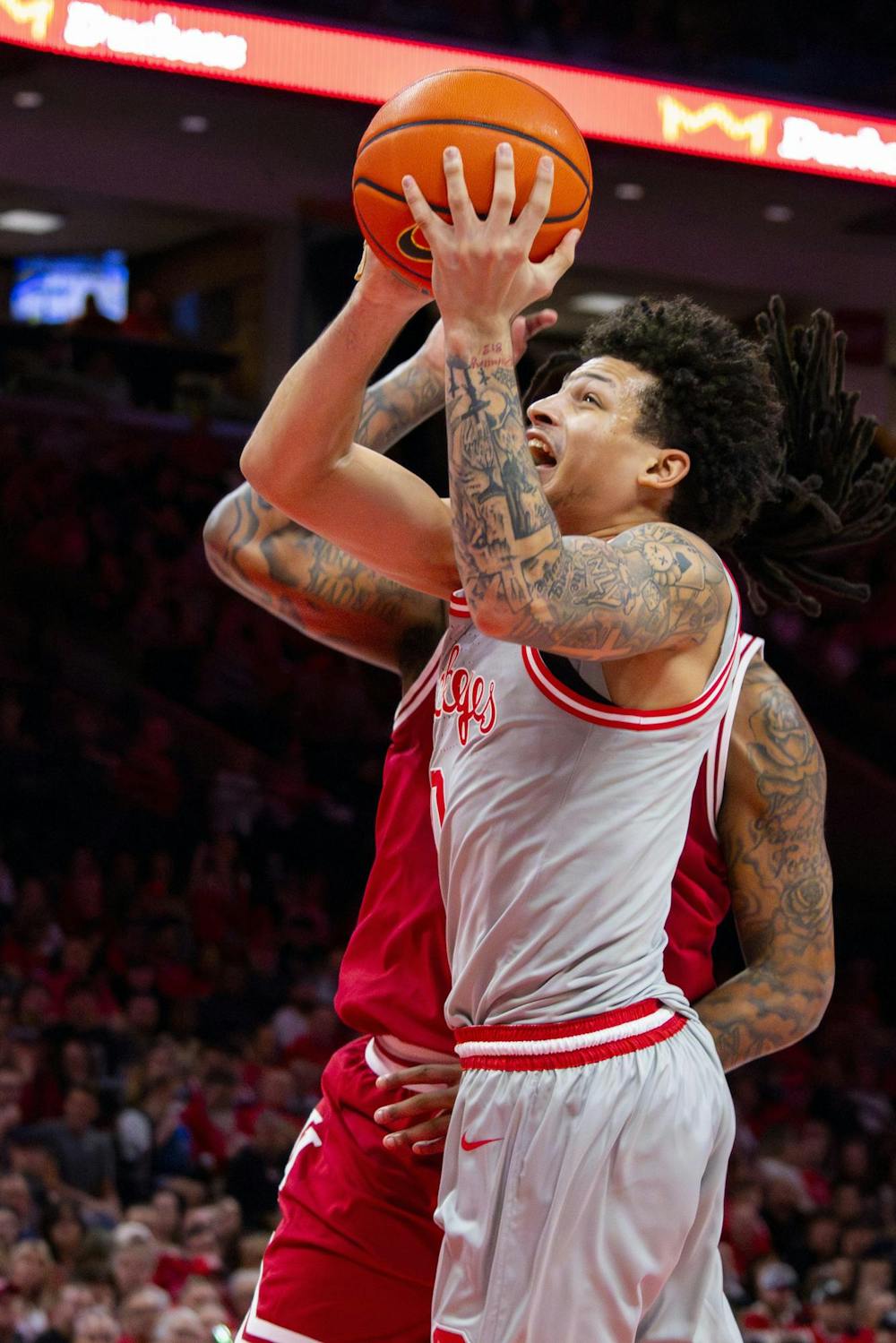 Ohio State sophomore guard John Mobley Jr. attempts a layup during the game between Indiana and the Buckeyes on March 7, 2026, at the Jerome Schottenstein Center in Columbus, Ohio. Mobley finished the game with 18 points. Jimmy Rush