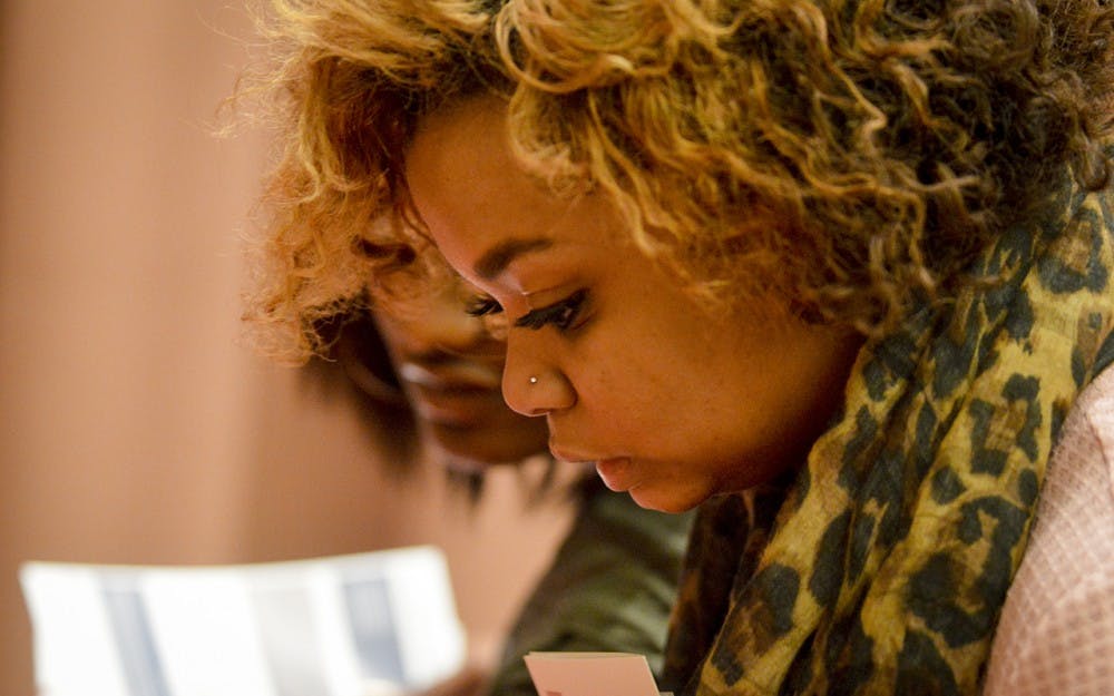 Sophomore Robyn Taylor learns more about the School of Public Health and what they have to offer students during the “Black Love, Sex, and Everything Else” event Wednesday evening in the Neal Marshall Black Culture Center. Students enjoyed open dialogue, games of facts and fiction about sex, and discussions on relationship and gender norm stereotypes.