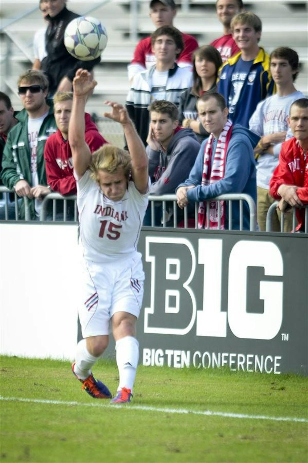 Sophomore midfielder/defender Jamie Vollmer throws in the ball during the Hoosiers' 2-2 tie against Michigan State on Sunday at Jerry Yeagley Field. Steph Langan