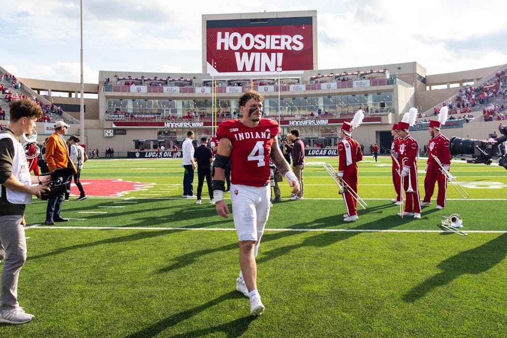 Senior linebacker Aiden Fisher walks off the field after Indiana football's Senior Day contest against Wisconsin on Nov. 15, 2025, at Memorial Stadium in Bloomington. Fisher never lost a game at Memorial Stadium.
