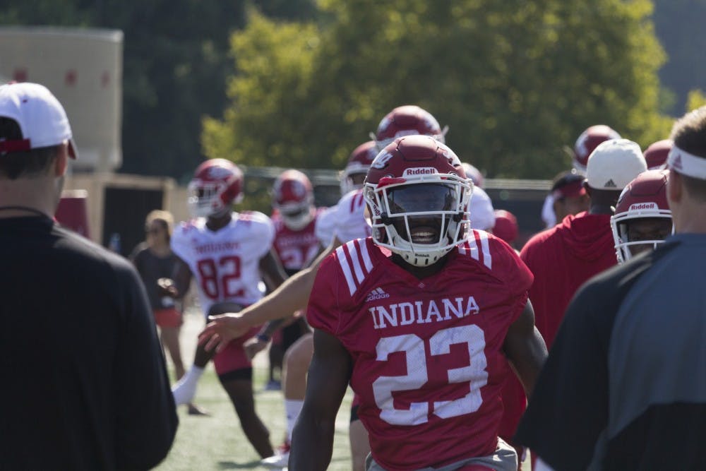 Freshman running back Ronnie Walker Jr. warms up Monday morning during practice at the IU Football practice fields. Matt Begala
