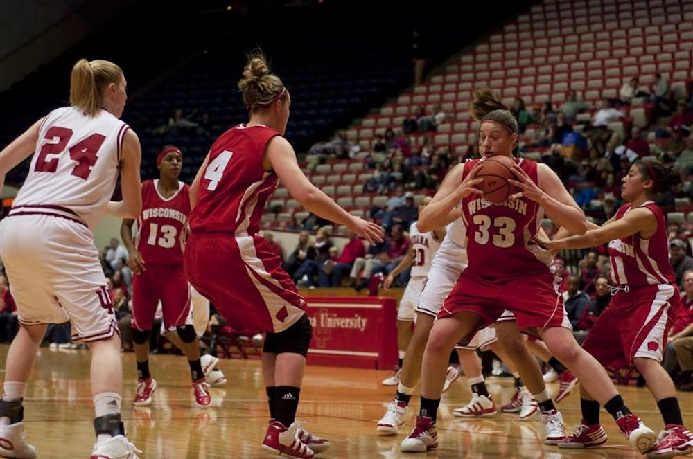 Wisconsin forward Lin Zastrow pulls down a rebound during the Badger's 55-47 win over IU Jan. 28 at Assembly Hall. Peter Stevenson