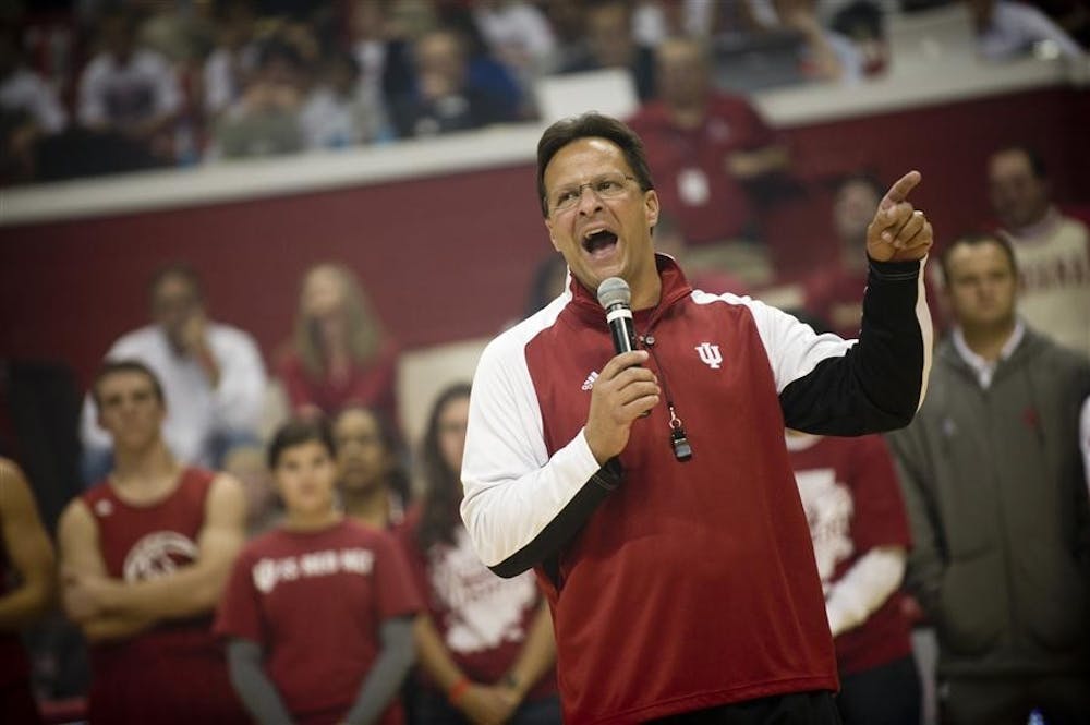 IU coach Tom Crean speaks at Hoosier Hysteria on Friday at Assembly Hall.