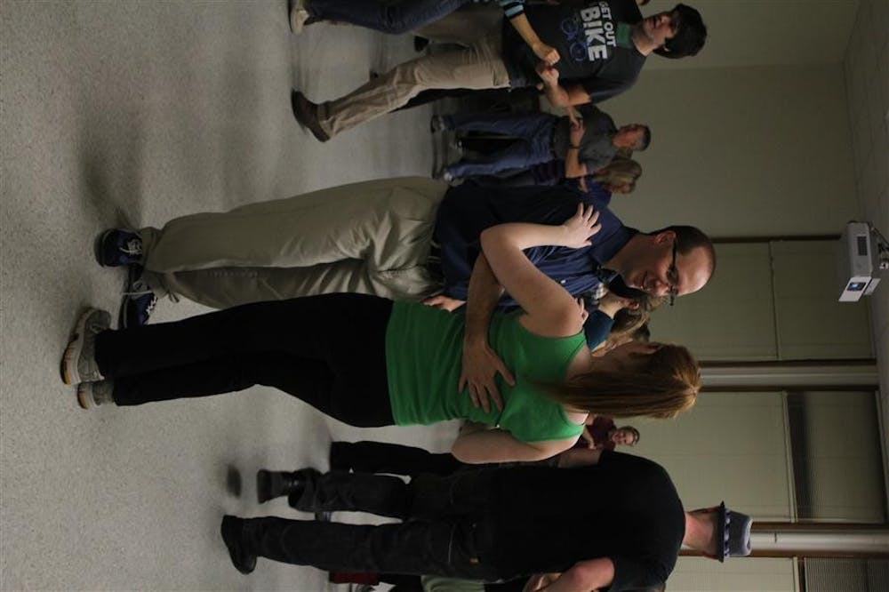 On Monday, Indiana University Swing Dance Club instructor Joseph Cottam leads first-year graduate student Ardea Smith in the basics of Lindy-Hop, a type of swing developed in Harlem's Savoy Ballroom in the 1930's and 40's.