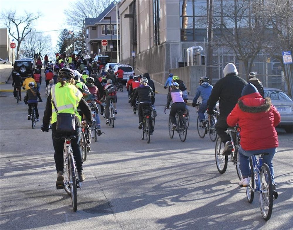 More than 60 participants in the 7-mile-long Terrible Horrible No Good Very Bad Bike Ride travel along East Eighth Street on Saturday morning. The bike ride is an annual event that makes its way through cycling routes around Bloomington to promote cycling in all kinds of weather.