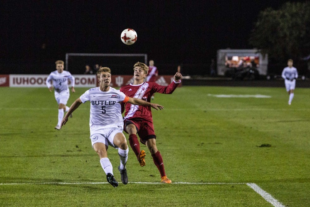 Sophomore midfielder Justin Rennicks attempts to win the ball against junior Bulldogs midfielder Derek Sutton on Oct. 16 at Bill Armstrong Stadium. Matt Begala