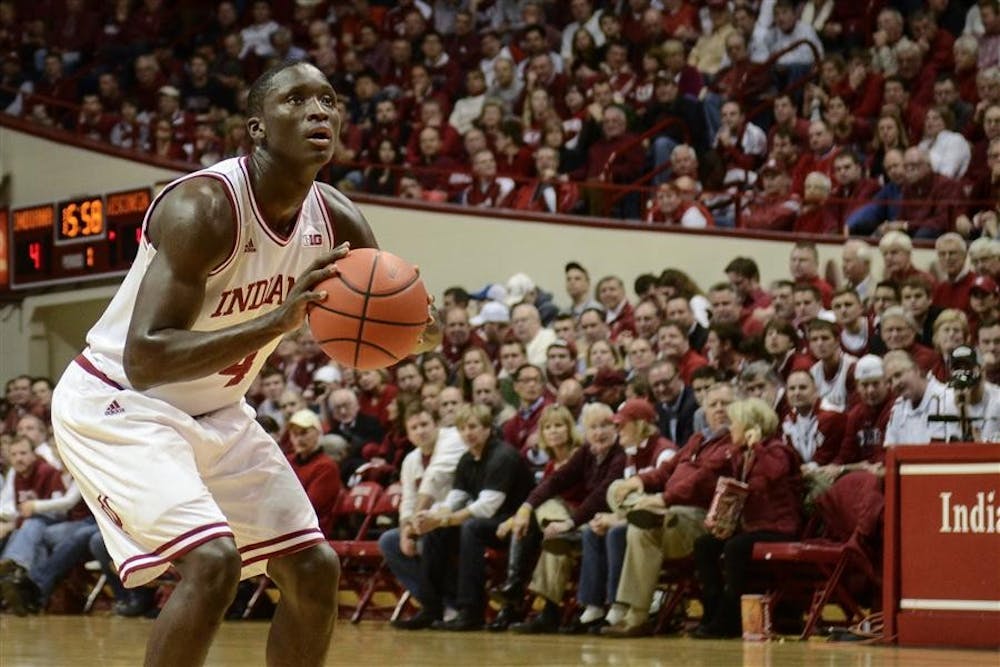 Junior guard Victor Oladipo prepares to shoot a free throw during the Hoosiers' 64-59 loss to Wisconsin on Tuesday at Assembly Hall.