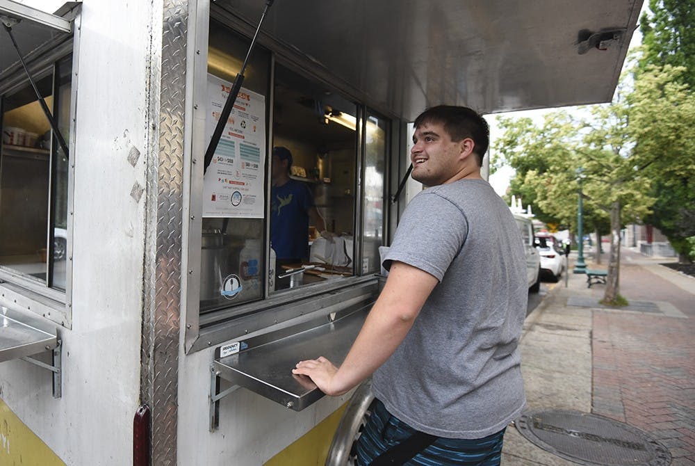 IU alumni Will Bernacchi waits for his Big Cheeze sandwich Tuesday afternoon. The Big Cheeze food truck is usually parked on Kirkwood near Greetings or Chipotle.