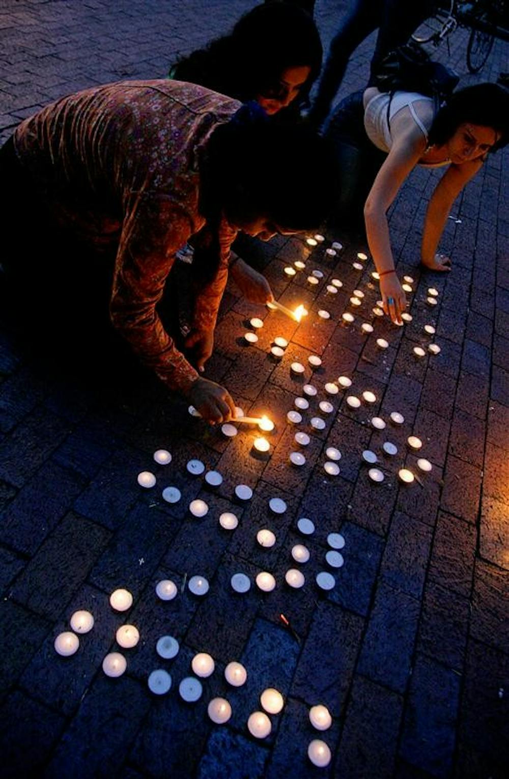 Participants light candles Friday evening at the Sample Gates in protest to the events in Iran over the past month. Election results are being disputed by the reform candidate, due to questionable results of the election. Chris Pickrell