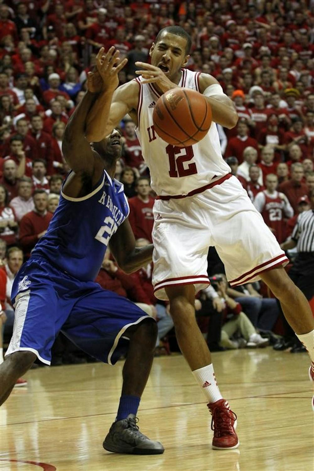 IU guard Verdell Jones III is fouled by a Kentucky player Saturday at Assembly Hall. Mark Felix