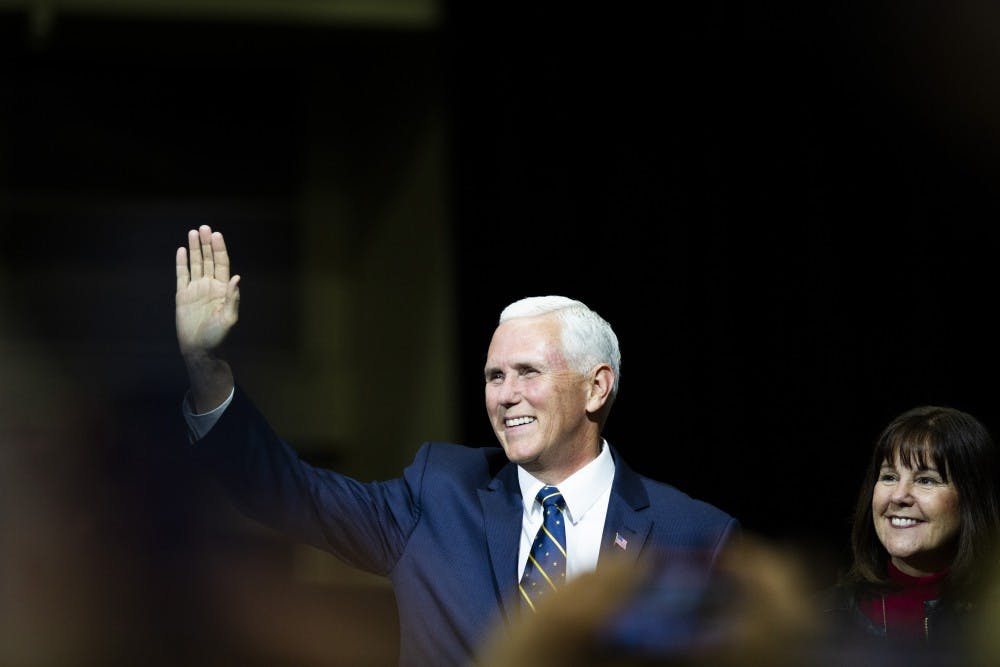 Vice President Mike Pence and Second Lady Karen Pence arrive at North Side Middle School Thursday, May 10, for the Donald Trump rally in Elkhart, Indiana.