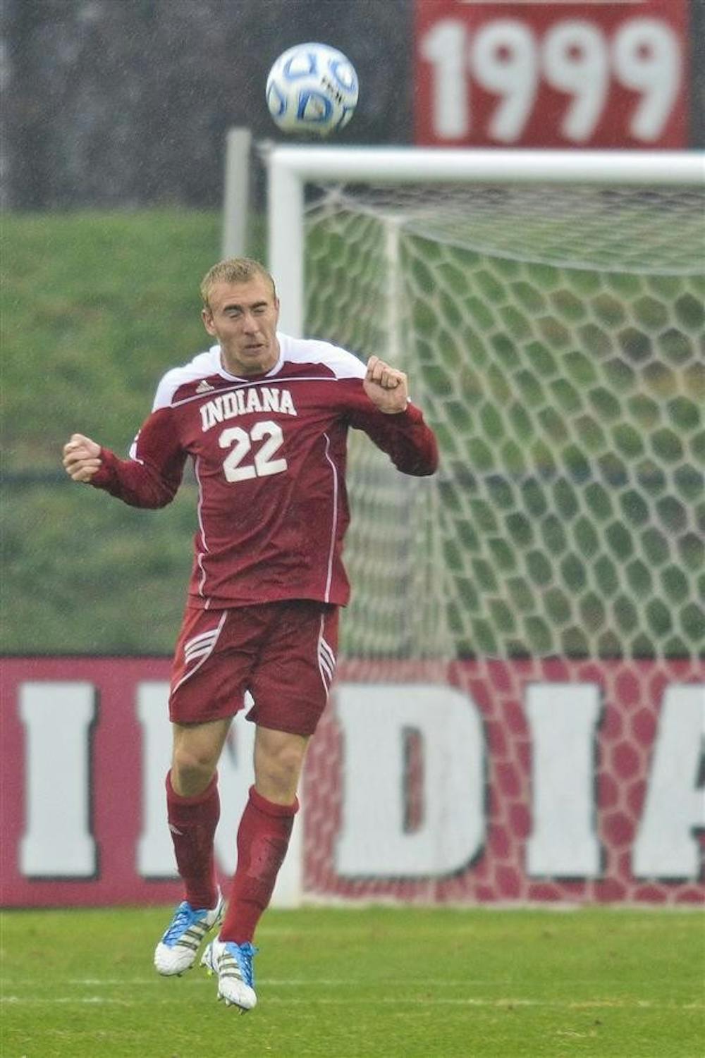 Junior midfileder defender Caleb Konstanski heads the ball during the Hoosiers' 3-0 victory against Old Dominion during Indiana's first round of NCAA tournament Sunday at Jerry Yeagley Field. Steph Langan