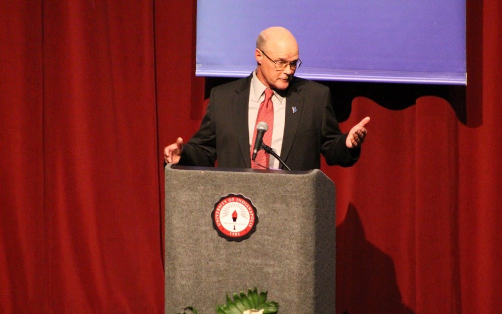 Libertarian candidate, Rex Bell speaks during the Indiana gubernatorial debate Monday evening at the University of Indianapolis.