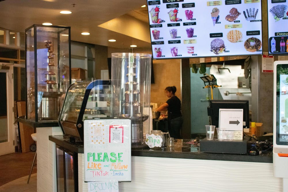 An employee works behind the counter Sept. 10, 2025, in La Dulce Chocolate in Bloomington. The shop opened in August and sells Dubai chocolate. Natalia Nelson