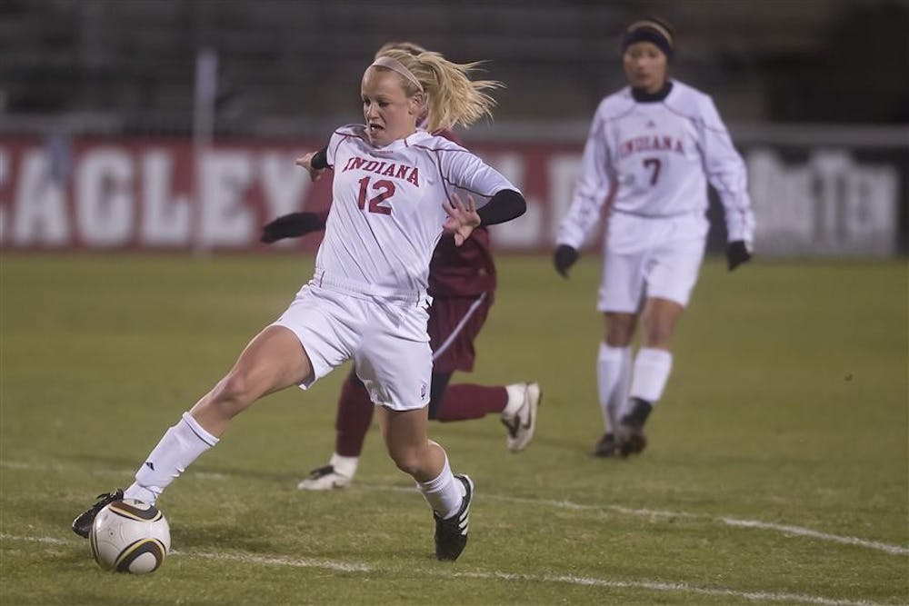 Senior midfielder Leigh Anne Cummings dribbles into the 18-yard box during IU's 3-0 loss to Minnesota on Friday at Bill Armstrong Stadium.