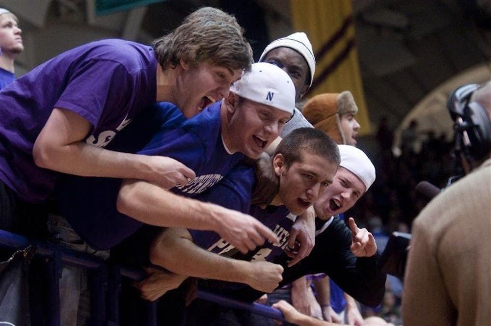 Members of the Northwestern student section cheer in front of Big Ten Network cameras before IU's 78-61 loss to Northwestern Feb. 7 in Evanston, Ill. Peter Stevenson