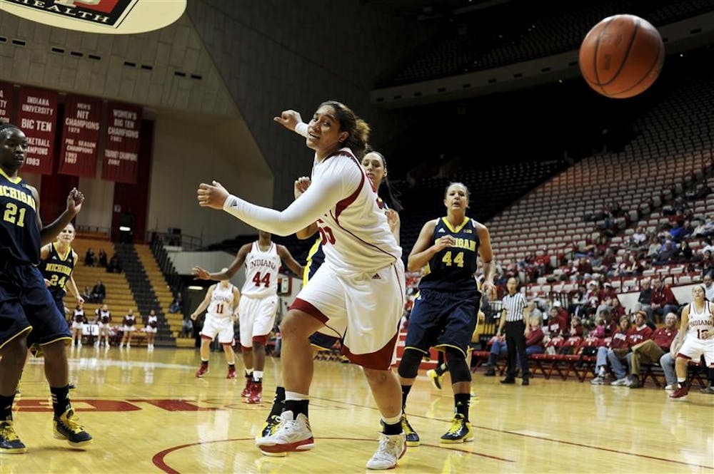 Junior forward Milika Taufa chases after a loose ball on Thursday night against Michigan at Assembly Hall. Hoosiers lost 61-43. Mark Felix