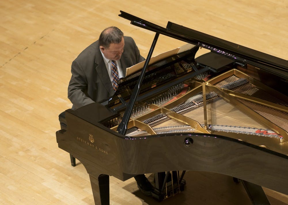 Paul Borg performs "Tres meditaciones poéticas," a 1992 piece by composer Roque Cordero, Thursday evening as part of the Salón Latino Chamber Music Series. Borg is a professor emeritus from Illinois State University. Emily Eckelbarger