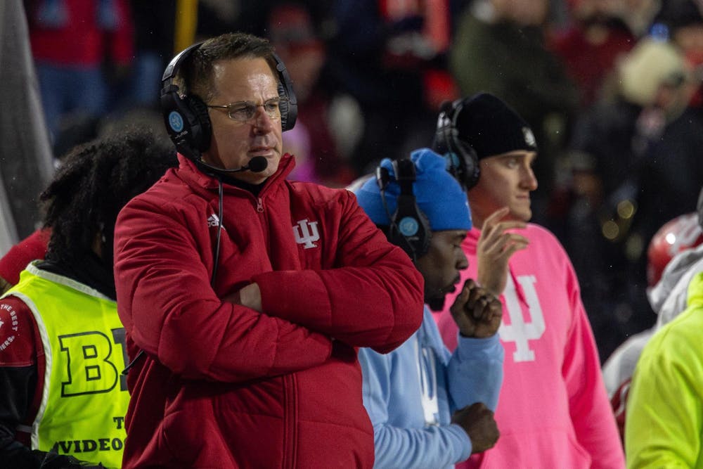 Indiana head coach Curt Cignetti watches from the sideline during a game against Purdue on Nov. 30, 2024, at Memorial Stadium in Bloomington. The Hoosiers finished 11-2 in Cignetti's first season at Indiana.