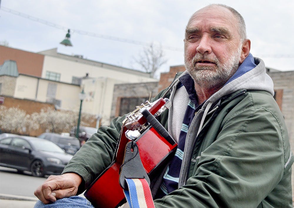 James Sallee speaks on Indiana’s low standing in income rankings on Wednesday afternoon at Kirkwood Avenue. Sallee, who now lives in a tent due to a disability, believes that the government’s neglecting of local issues will lead to a crash worse than the great depression.