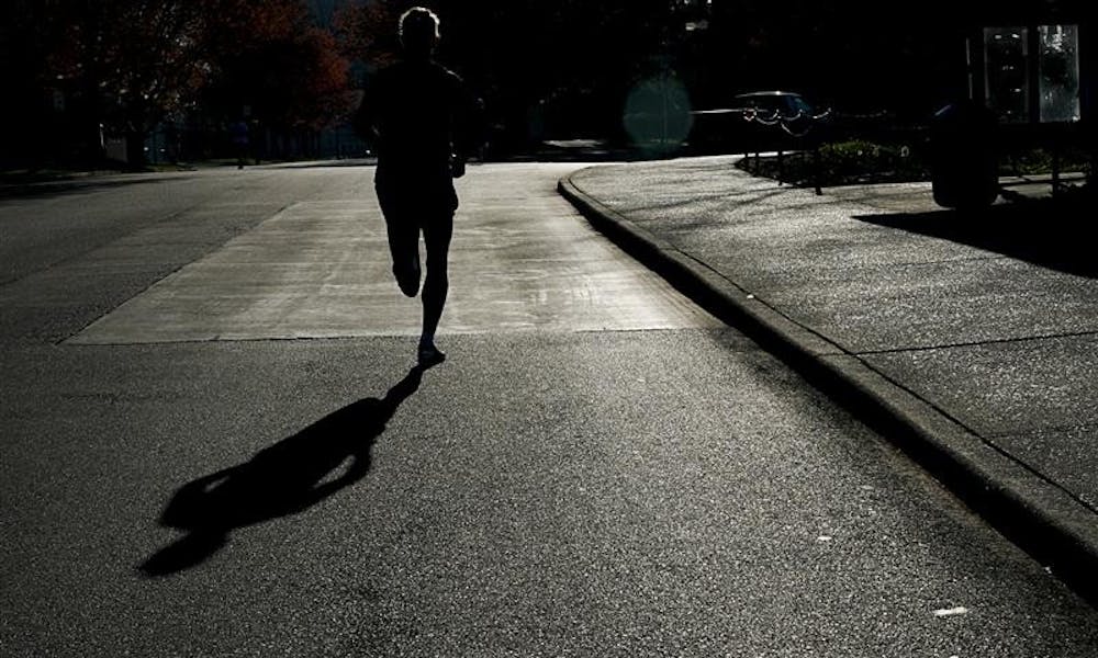 A lone runner runs on 7th street towards mile marker 11 on Saturday morning in front of the Health, Physical Education and Recreation Building. Residents throughout the state of Indiana along with IU students participated in the 2009 IU Mini Marathon and 5k run. The Charity run was made possible by the Circle of Life foundation, which is a not-for-profit student organization that raises money to grant scholarships to cancer patients and survivors.