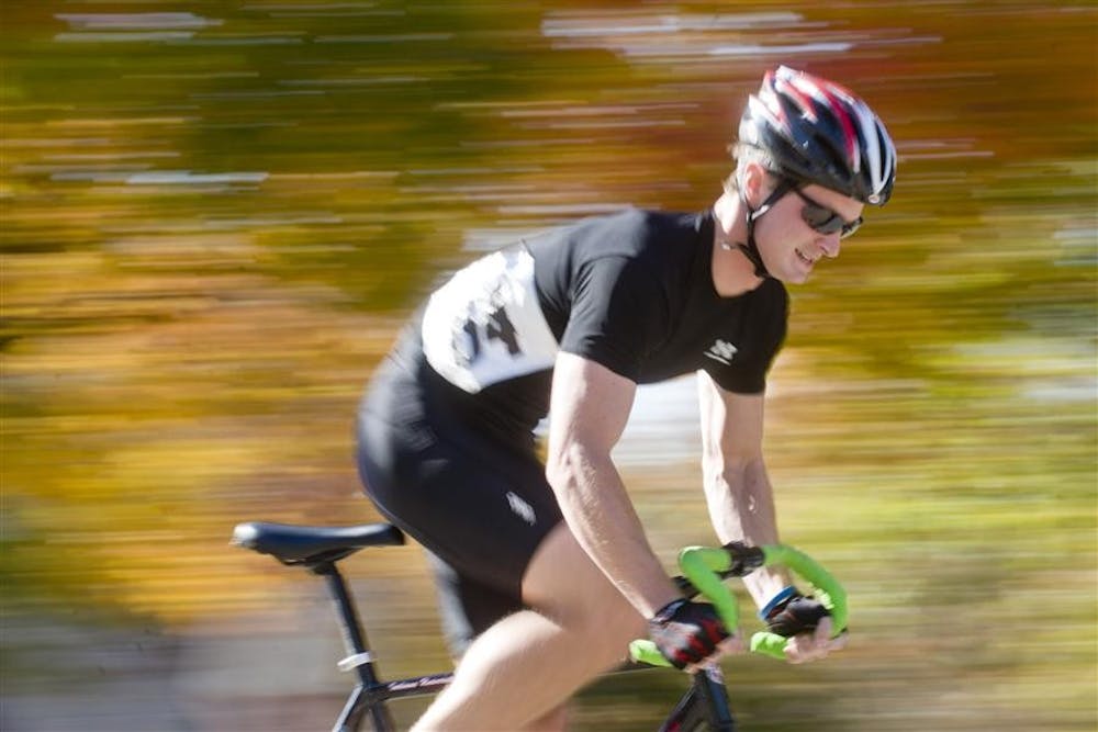 Justin Reeder of Cru Cycling races forward during Street Sprints on Friday on North Jordan Ave. Peter Stevenson